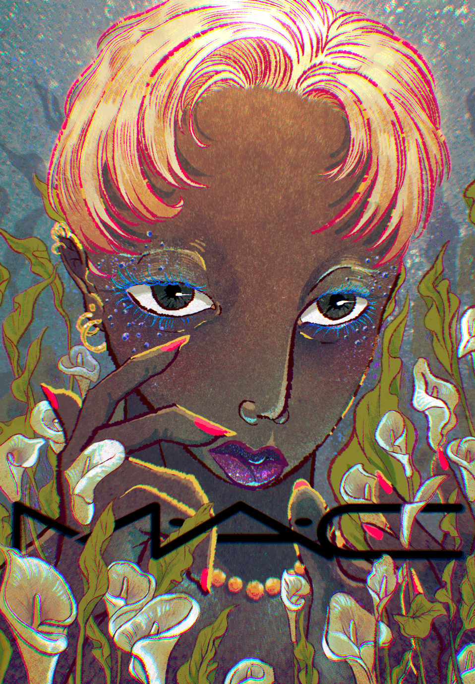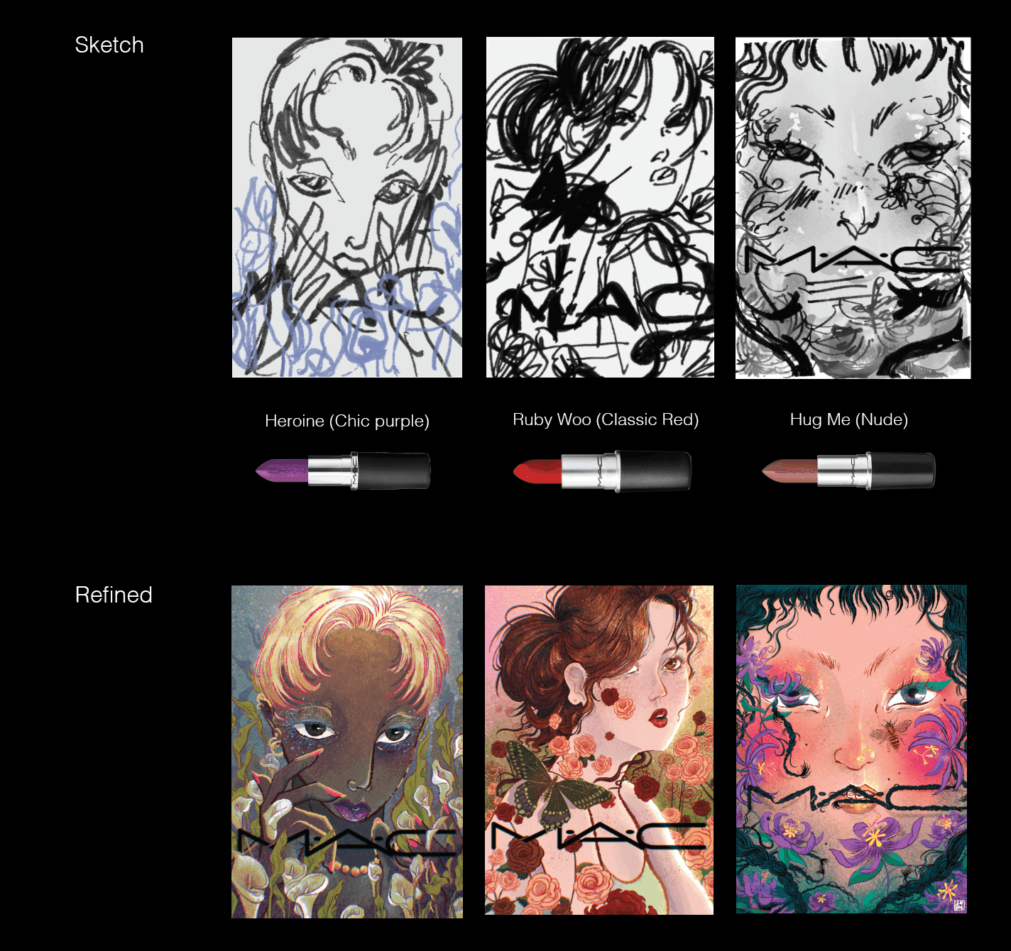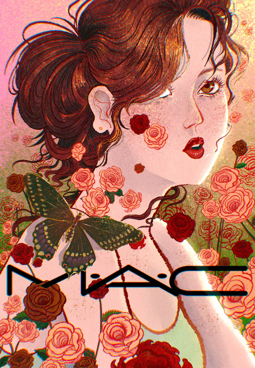 MAC's branding is bold, editorial, and experimental. In line with this, this illustrated campaign focuses on diversity and an unflinching personal style. Flowers were used to bring out femininity while complementing three essential lipstick shade categories: Peachy nudes, classy Reds, chic purples. It doesn't give Pinterest-pretty, but rather fashion meets attitude.